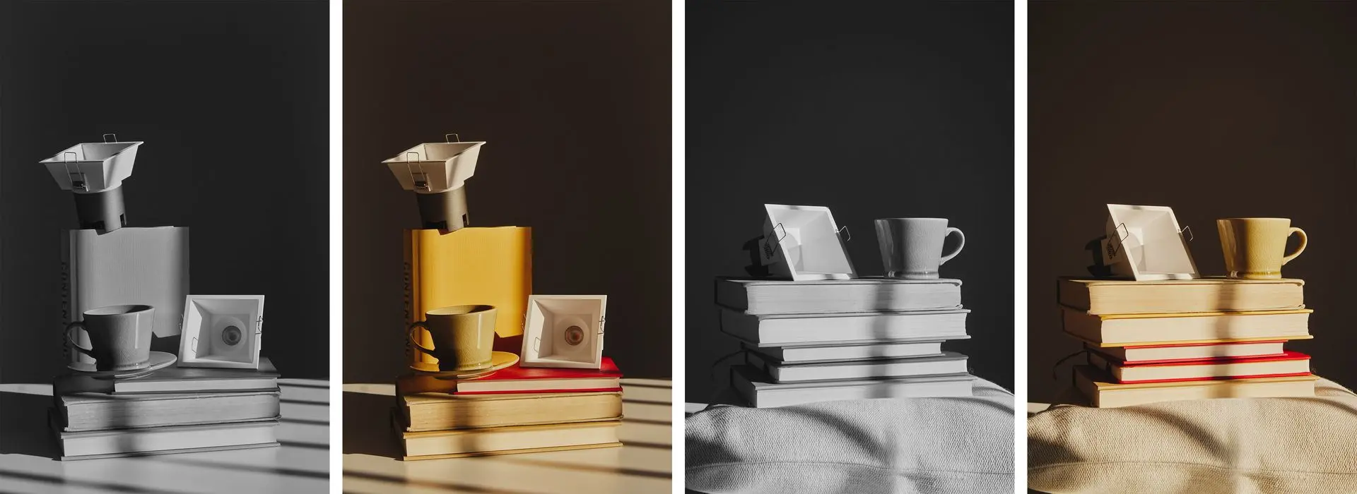 A través de una imagen queremos mostrar el tamaño real de nuestros productos, para ello, las luminarias aparecerán cuidadosamente colocadas al lado de objetos cotidianos. Estos objetos dependerán de si el producto está enfocado para un salón, dormitorio, cocina, baño o exterior.